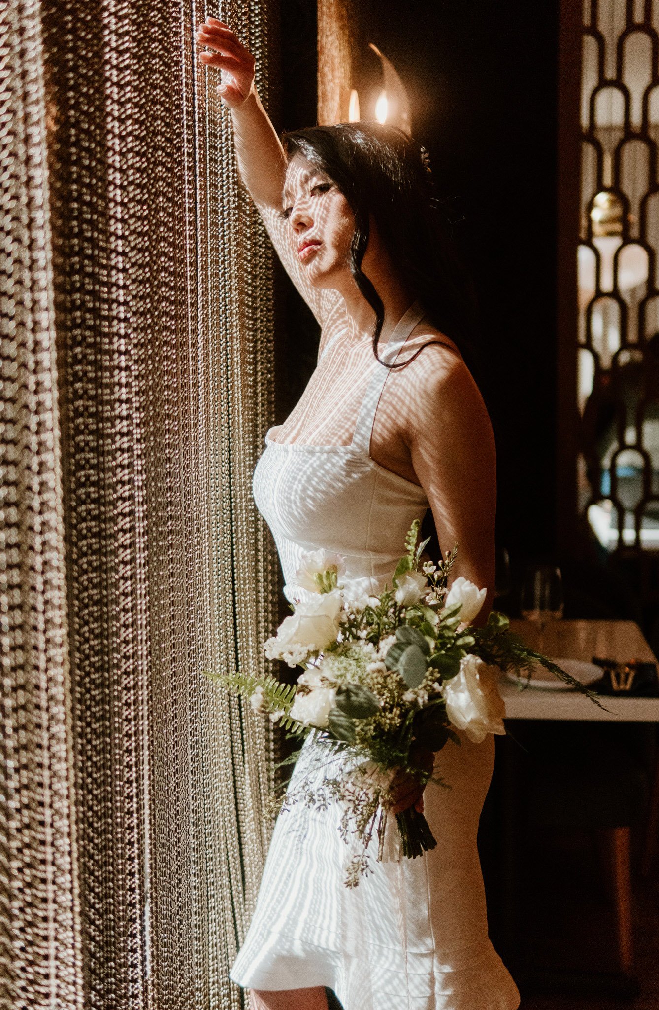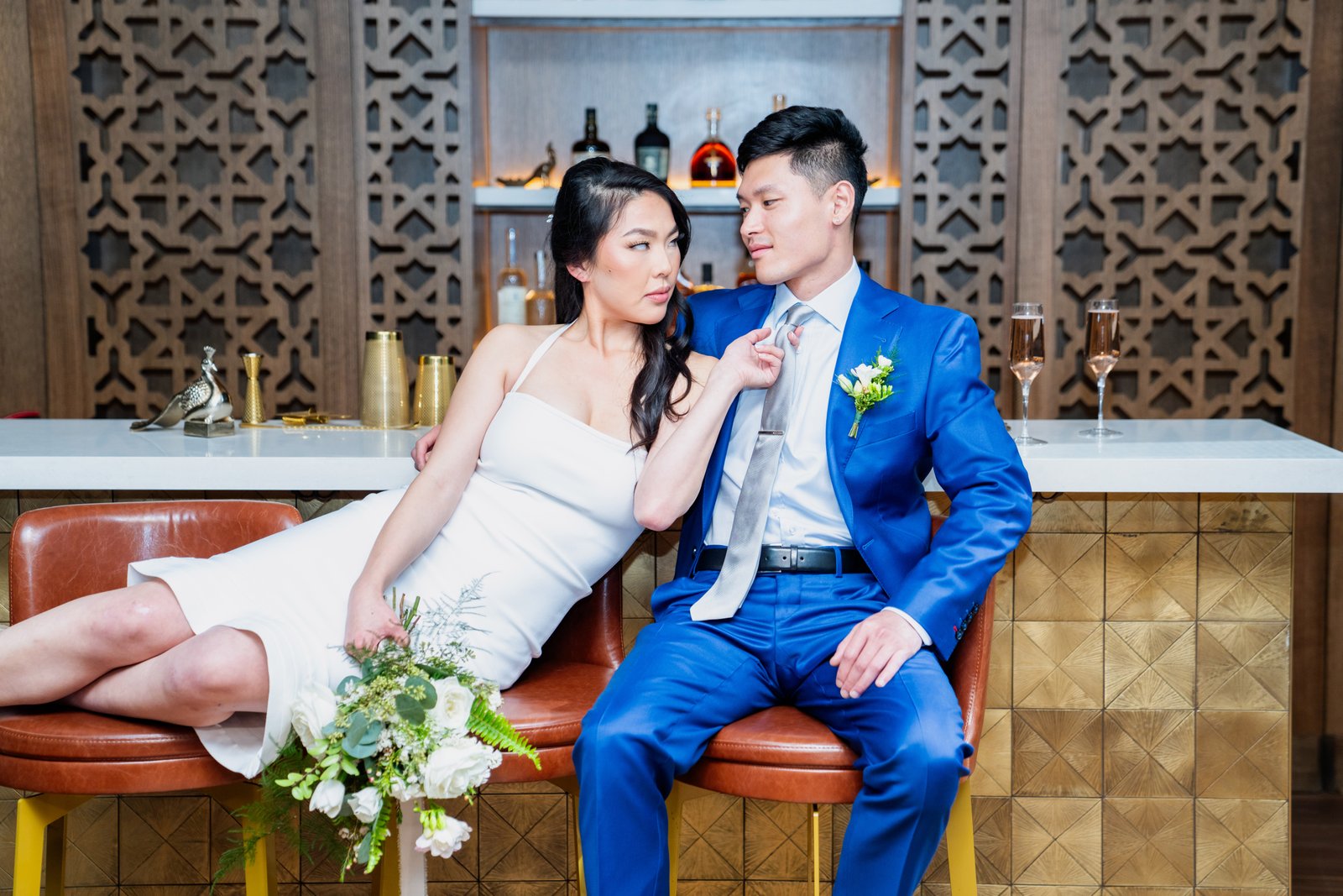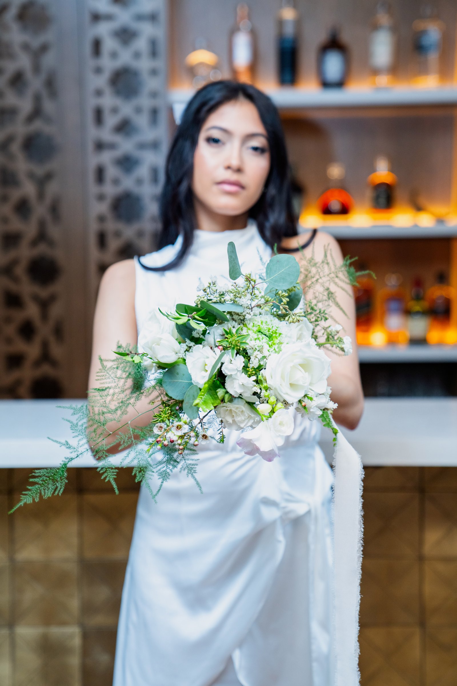 The florals were designed to complement the rich textures and bold colors of the traditional attire, creating a seamless flow between modern style and timeless cultural elements. Lush arrangements of white roses, tulips, and delicate greenery softened the boldness of gold accents and vibrant fabrics, bringing a sense of serenity and grace to the overall design.