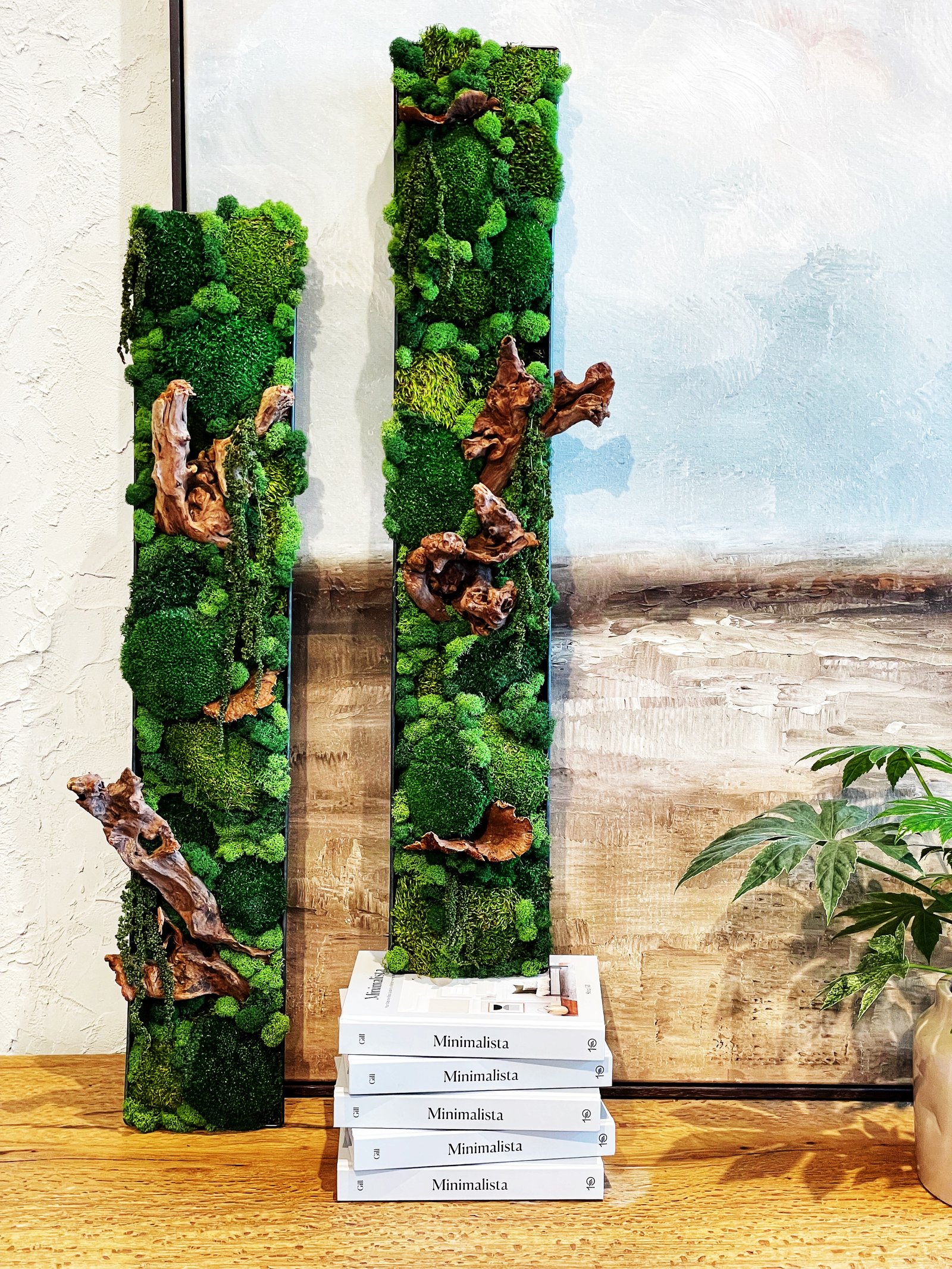 Each piece is made to order, using real preserved moss, ferns, and natural wood. They require zero maintenance, never need watering, and will stay vibrant and green for years. Every design is one of a kind, just like nature itself.