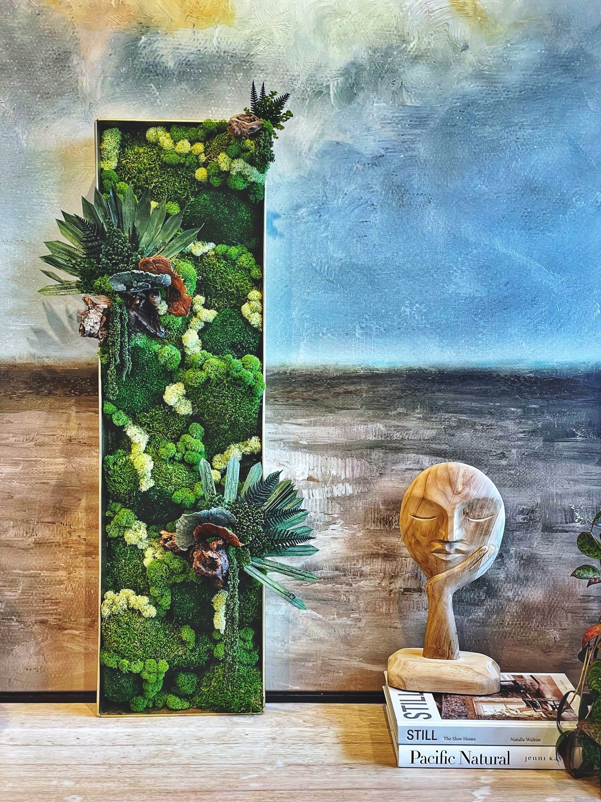 Welcome to a world where nature meets design, where lush greenery lives on, beautifully preserved, with no need for sunlight or watering. Our custom moss art pieces are handcrafted to bring the calming presence of nature into your space, whether it is a cozy corner at home, a striking statement in a retail space, or a full wall installation in a commercial setting.